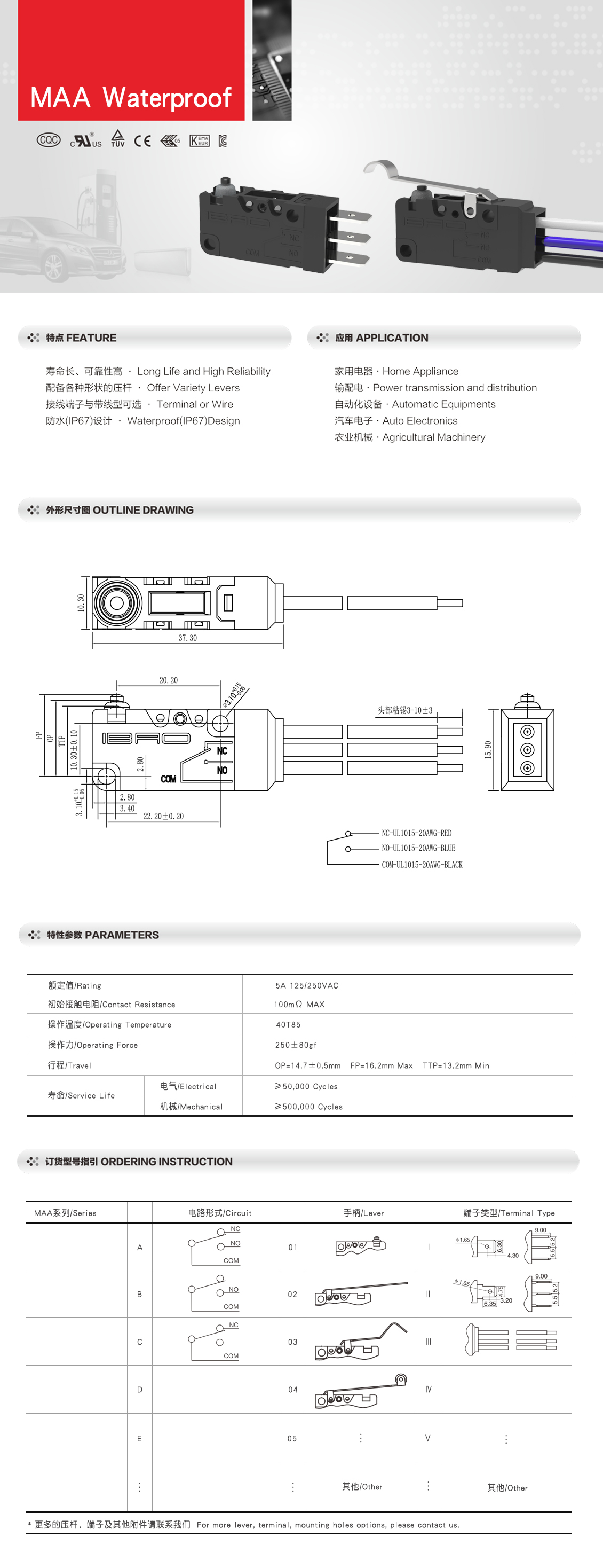 防水微动开关MAA系列