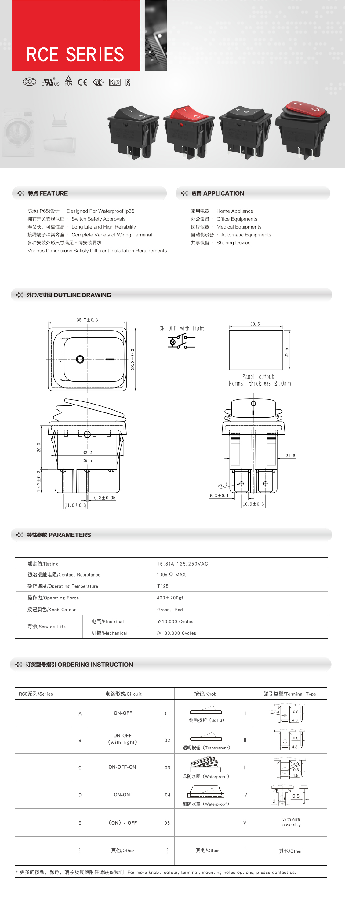 RCE系列 船型开关 方形翘板开关KCD4 ON-OFF-ON可做复位